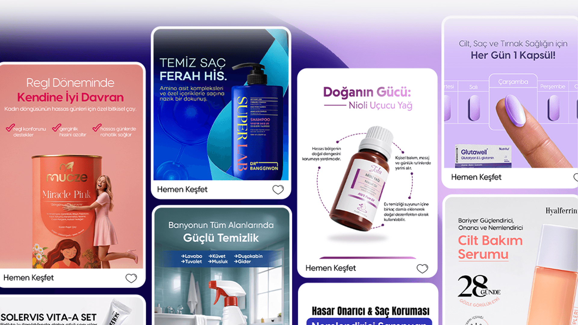 Ürün fotoğraflarından banner ve sosyal medya kreatiflerine kadar, markanızın satışlarını artıracak tüm görselleri profesyonel şekilde hazırlıyoruz.